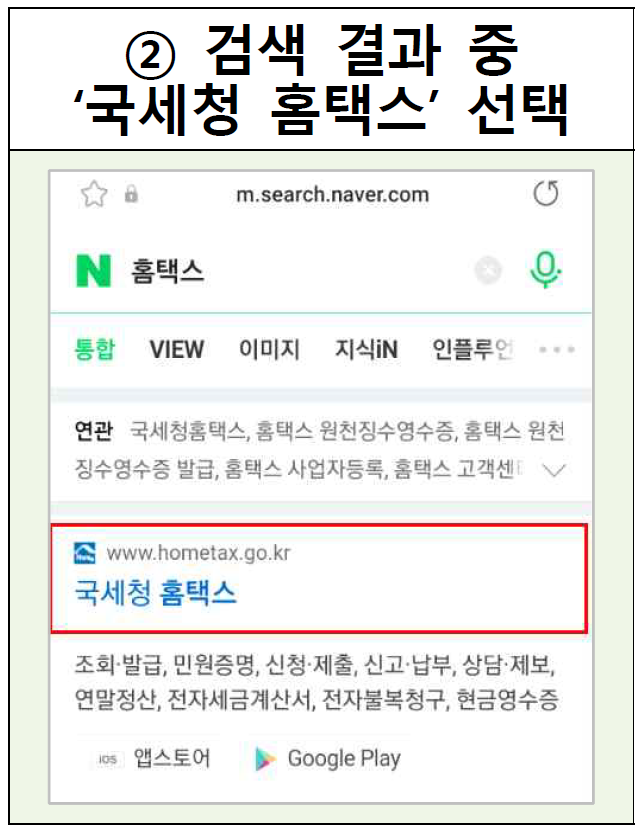 ② 검색 결과 중 국세청 홈택스 선택